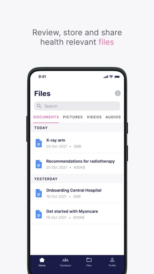 With myoncare we would like to support you throughout your health journey by allowing you to easily exchange various health data, such as care and therapy plans, medications, files, activity data and messages with your doctors - all in one app!