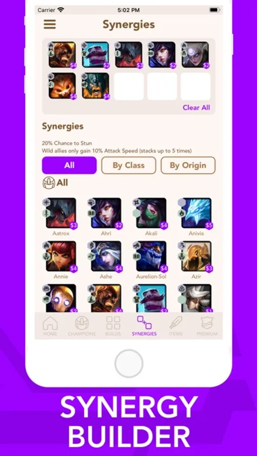* Team Builder: Create your own teams and view which ones have the best Synergies