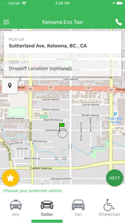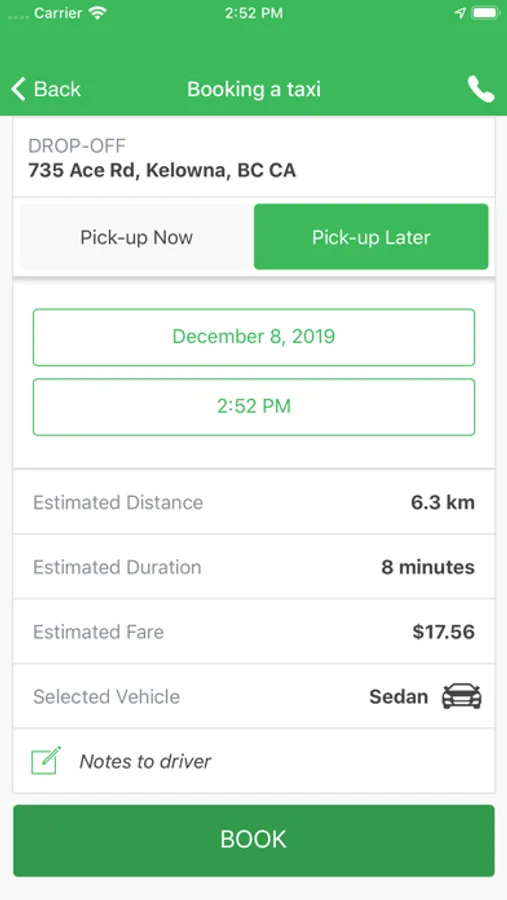 Book a taxi appointment with ECO Taxi Kelowna from your mobile device. Specify a pickup location, a date and time, and manage your bookings.