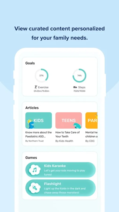 HEALTHY HABITS AND GOALS: Set and track daily health goals for your child. Reward your child for meeting their wellness goals with tracked points.