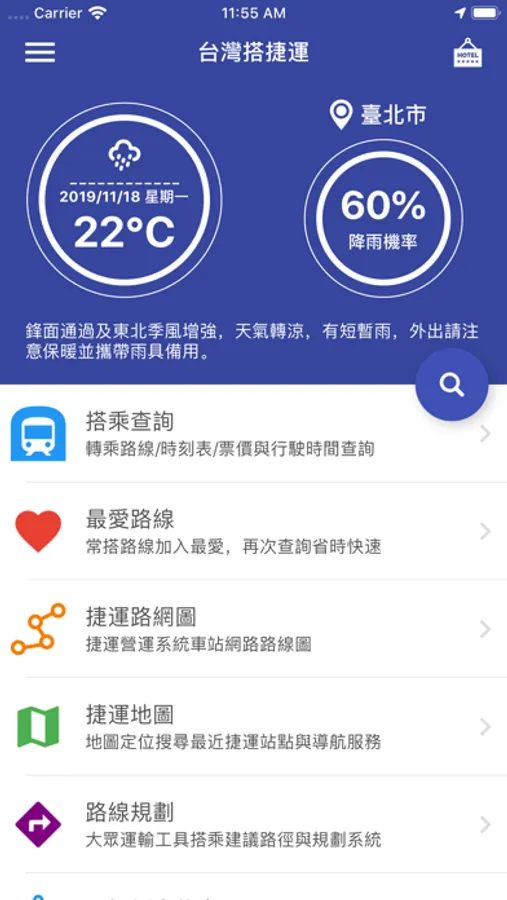 自動串連台鐵/高鐵/捷運/客運/公車/Ubike/航班時刻表等查詢與訂票服務,以及天氣預報/訂房比價/美食景點/自助旅行行程攻略分享等旅遊相關資訊,所有交通轉乘實用查詢工具一次全部到位!