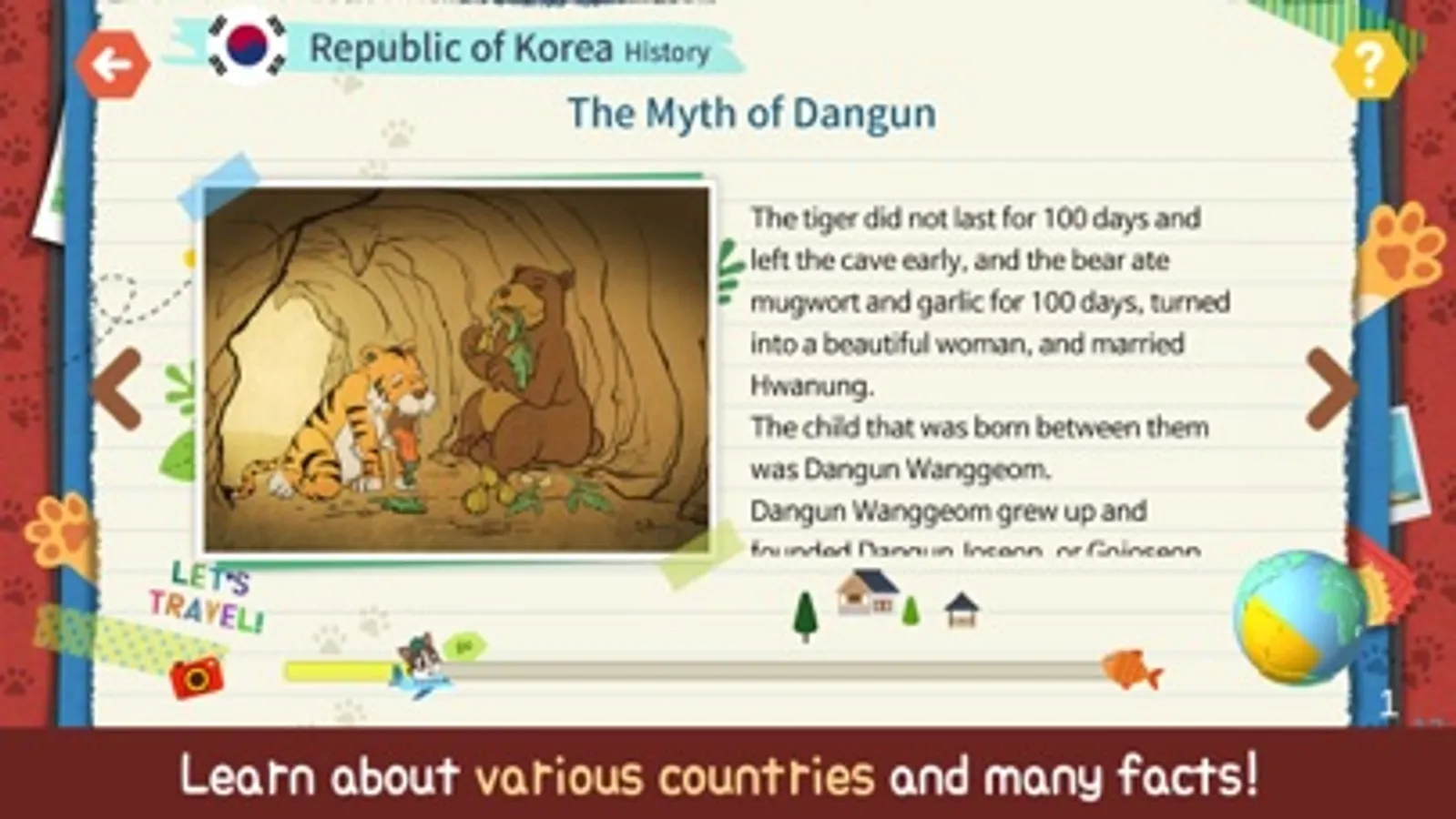In addition to Curi and Lio's fun moving cartoon, "Curio WorldMap" also features 12 countries of exploration, quizzes, supplementary audio, and many more!