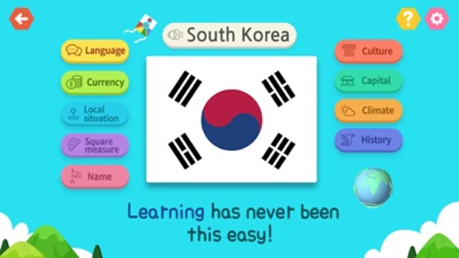 - Easy to learn country facts such as national language, currency, location, area, name, culture, capital, climate, and history.