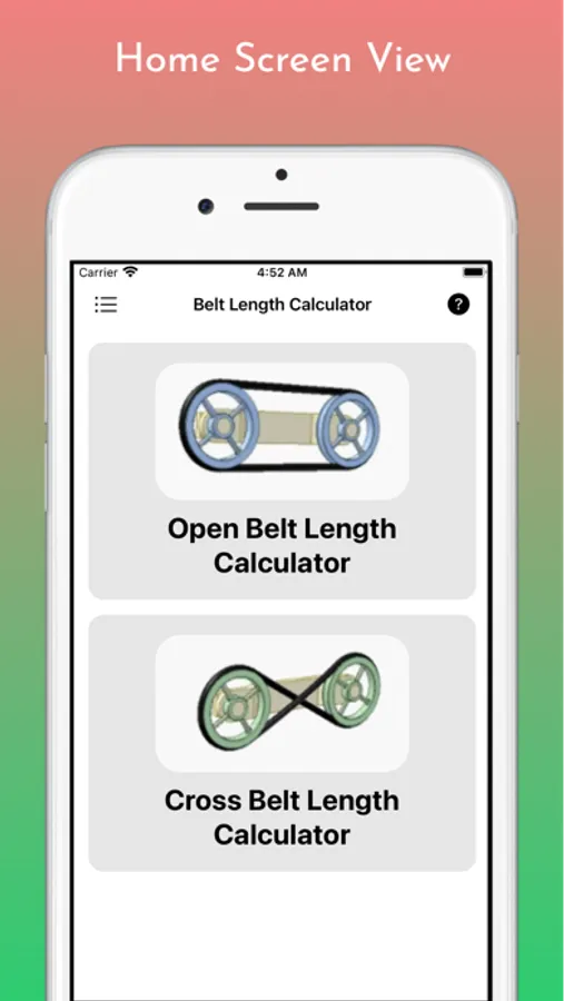 In this app Open belt arrangement & Cross belt arrangement are used.