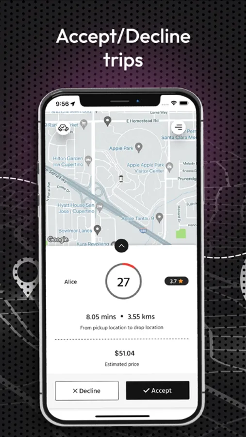 Confirm or decline a ride easily.