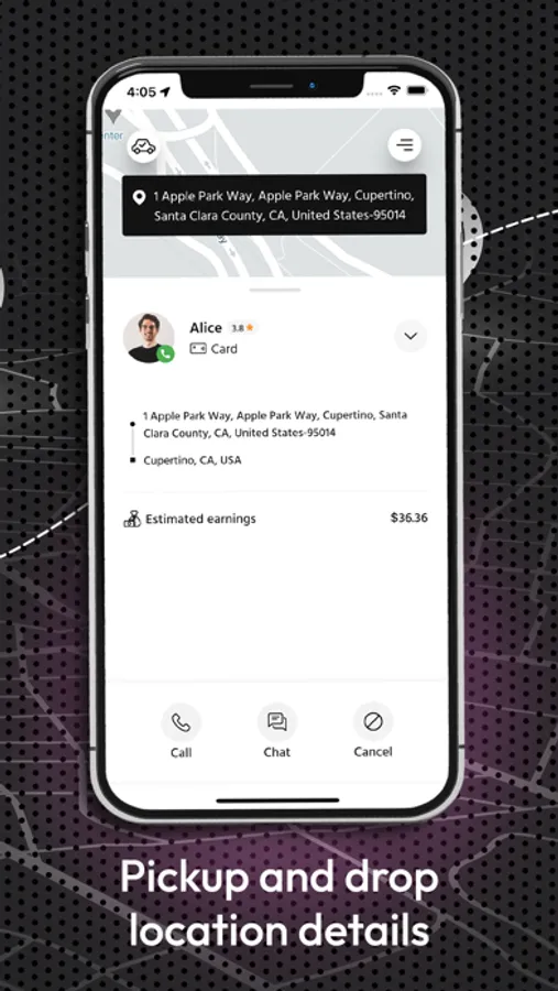 In-call option aiding drivers to call their rider knowing their exact location.