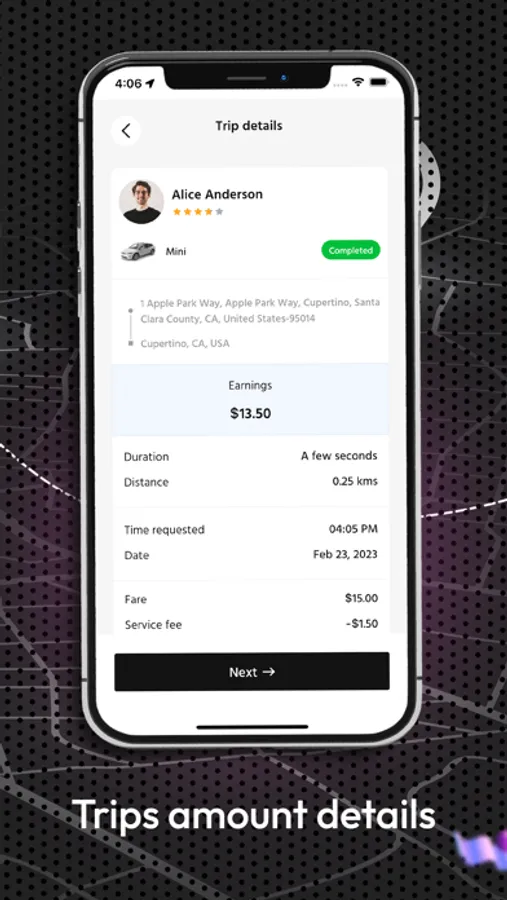 -Drivers can track their past and current trips