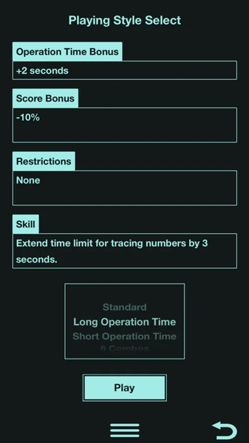 Depending on the playing style you select, a time limit for tracing numbers will be extended, or the score will increase when special conditions are met.