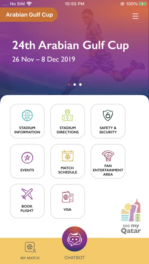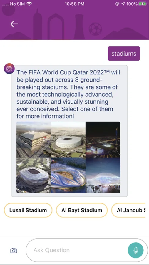 1. Chat with a virtual assistant which will answer all queries about Qatar and Arabian Gulf Cup 2019.