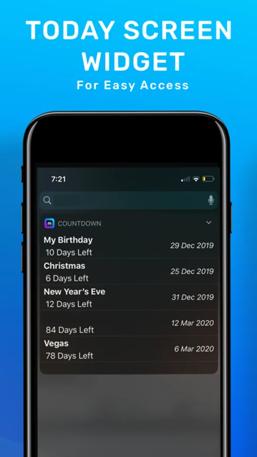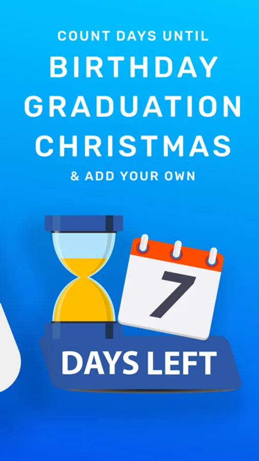 Count down the days until your special events with our app. Birthdays, Christmas, Vacations, Graduations, Anniversaries and anything else you can think of!