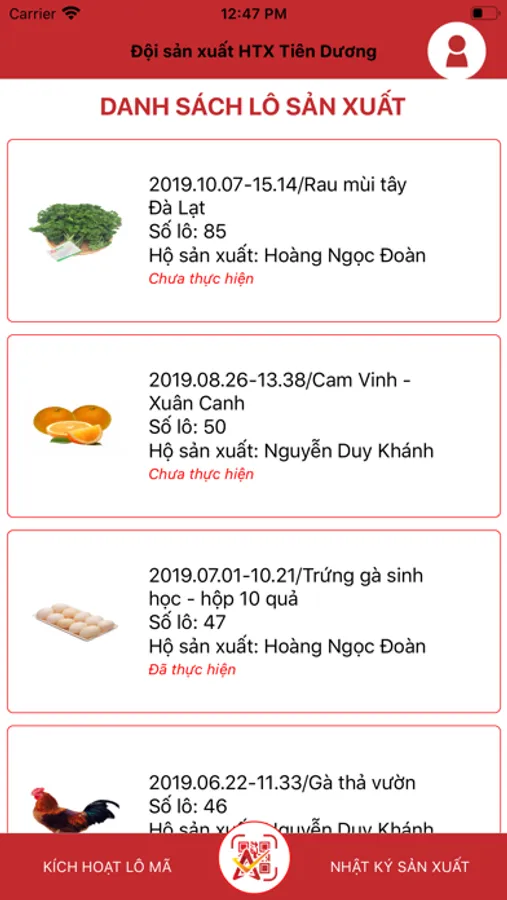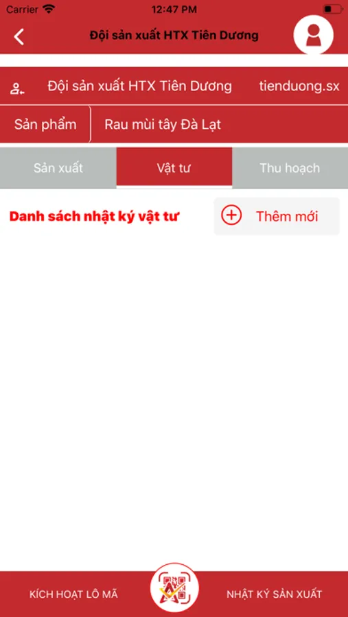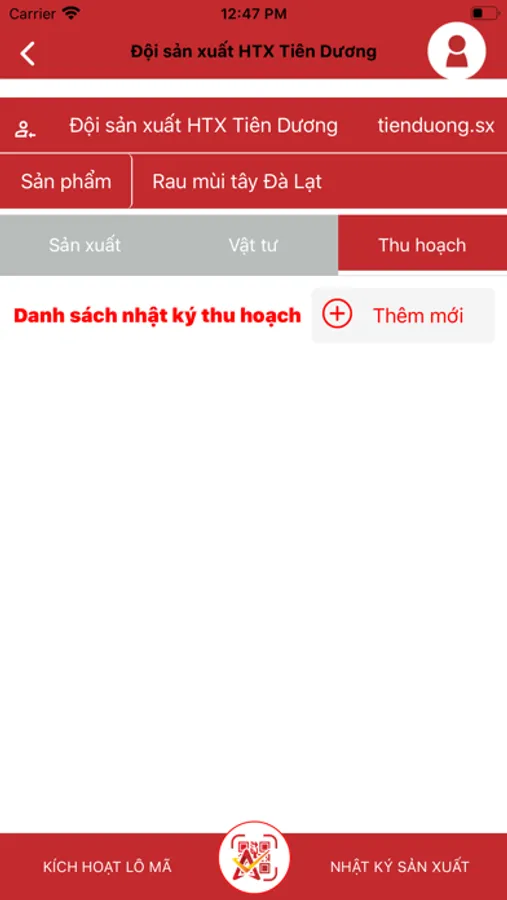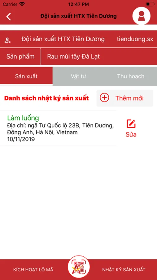 - Chức năng quản lý lô sản xuất: Cập nhật nhật ký thực hành sản xuất, cập nhật nhật ký vật tư, cập nhật nhập ký thu hoạch, cập nhật nhật ký sơ chế chế biến.
