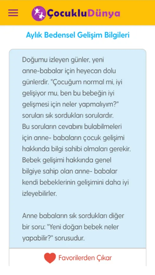 Doğumdan itibaren çocuğunuzun yaşına ve