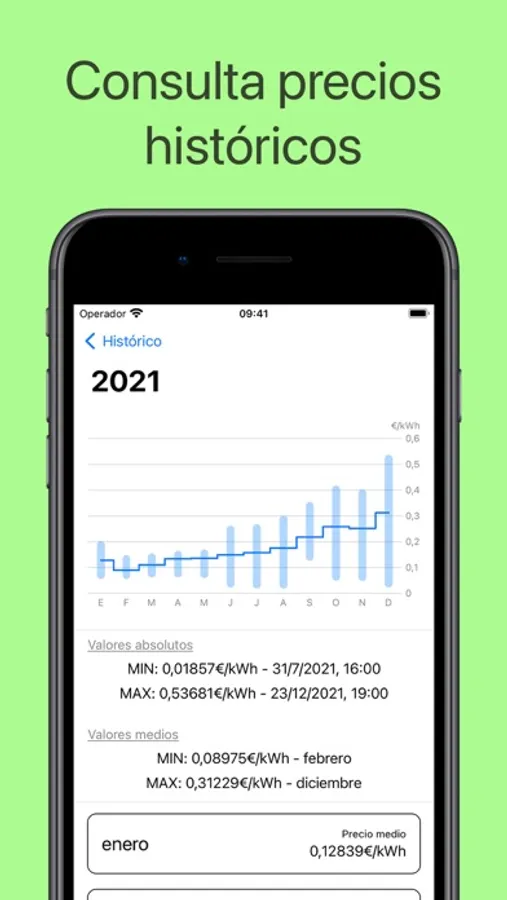 Por último, la aplicación permite consultar el precio medio de años anteriores para conocer la evolución a lo largo de tiempo.