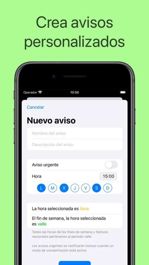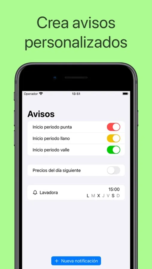 También puedes añadir avisos personalizados para recibir notificaciones que te ayuden a programar mejor los consumos en las horas más económicas.