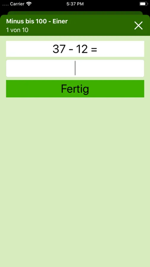 Mit dieser App können Ihre Kinder Grundrechenarten aus der Grundschule üben. Ohne Abo und ohne In–App-Käufe. Ich habe ganz bewußt auf ein schlichtes und einfaches Design gesetzt. Die App soll sich sich auf das konzentrieren was sie kann. Den Kindern beim Lernen und Üben helfen. Es werden verschiedene Aufgabentypen angeboten wie z.B.
