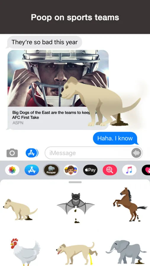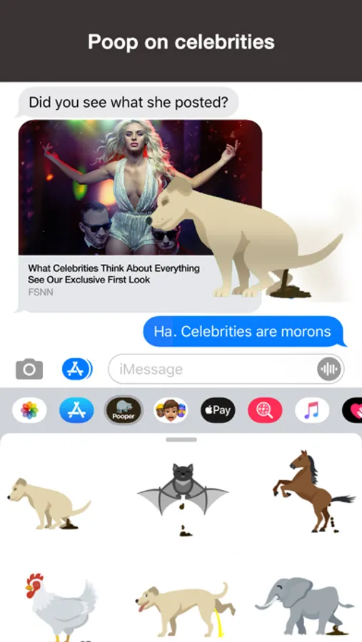 Poop on any text, picture, article, video, or gif you want with Pooper stickers in iMessage!