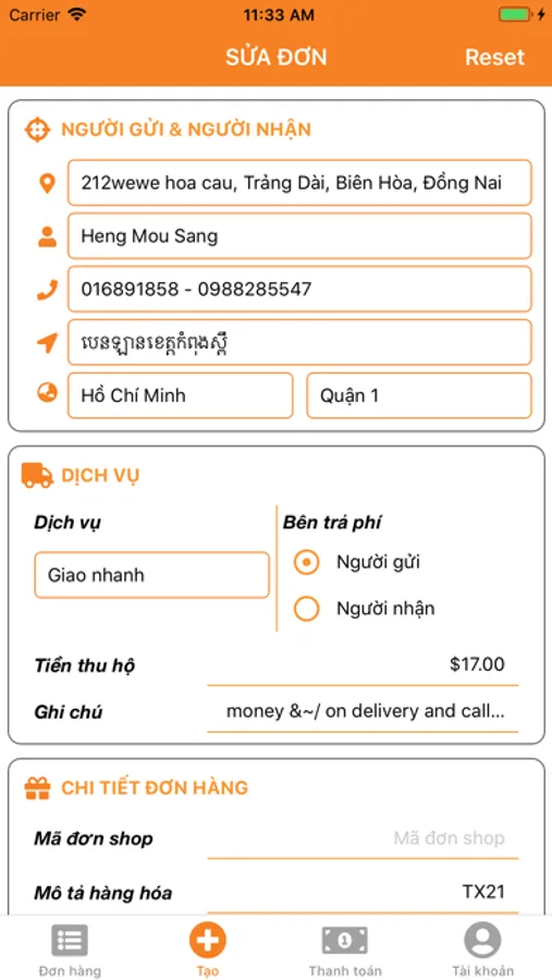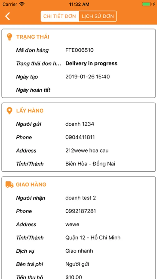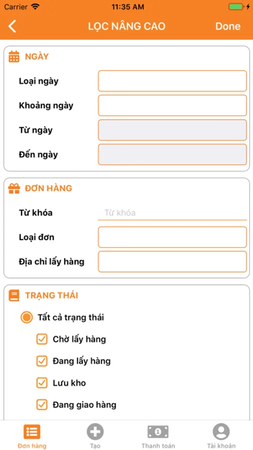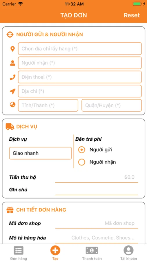 Ứng dụng dành cho Shop của FulltimeShip - dịch vụ giao hàng thu hộ tại Biên Hòa, với các tính năng: