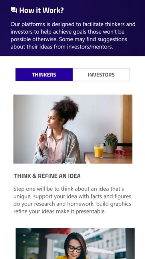Thinkers also get suggestions from other thinkers and investors under their posted ideas which keep them motivated and also give them suggestions on improving the presented ideas.