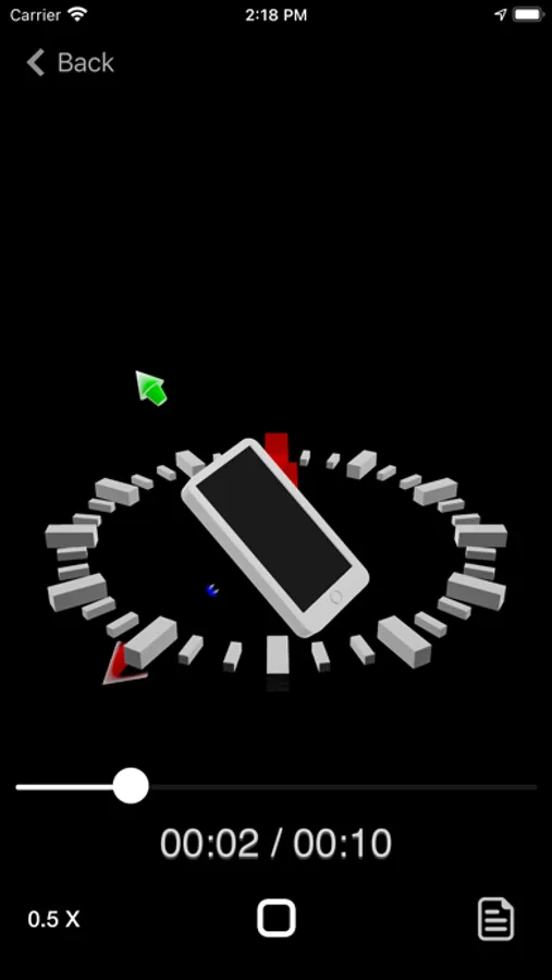 • Show device acceleration by 3D Arrow. [X - Red, Y - Green, Z - Blue]