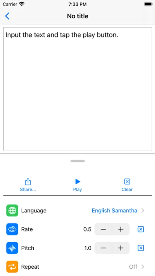 - Synthesize text and play immediately.
