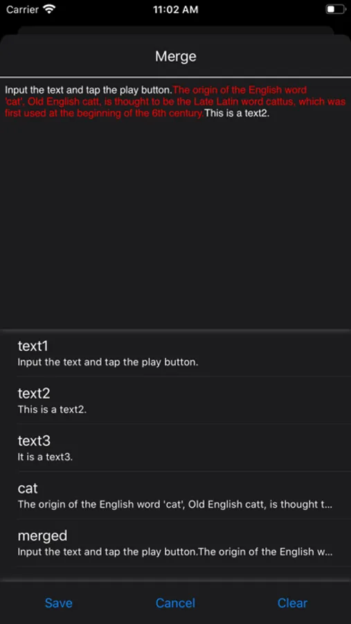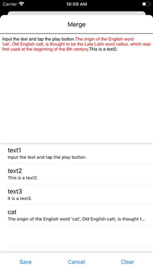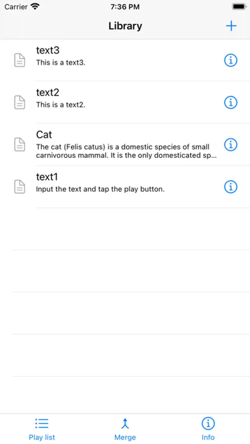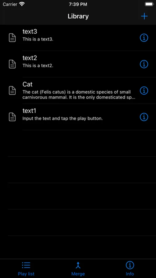 - Easily merge and save multiple text saved in the library for playback and creating a sound at once.