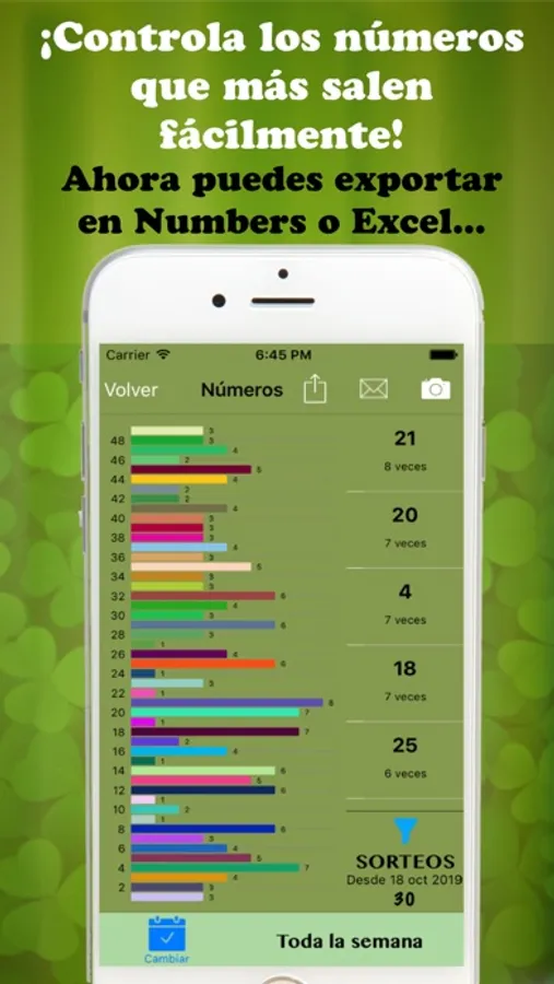 - Gráficos de los números que más salen. Separados por día si lo deseas.