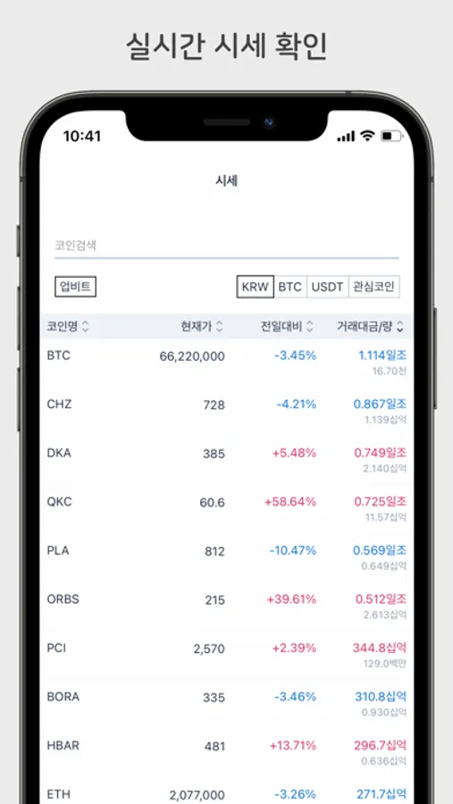 각종 거래소의 코인 시세를 즉시 확인 할 수 있고 알림을 등록 할 수 있습니다.