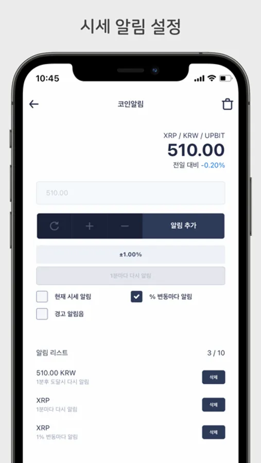 > 가격 / 현재 시세 / 퍼센트 변동 알림 설정