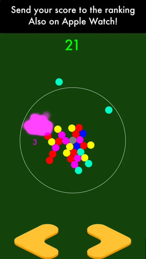 Rotate to put 3 or more balls of same color. Balls appear constantly. Depending on the level, faster and more colors. A Match 3 Game!