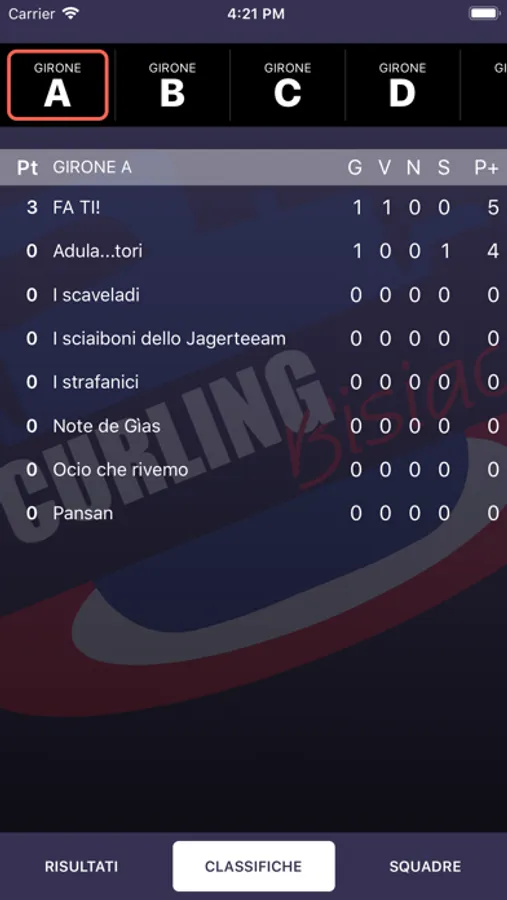 Questa versione 1.0 permette di consultare il calendario degli incontri, le classifiche di ogni singolo girone e ricevere le notifiche del risultato attivando la campanella.