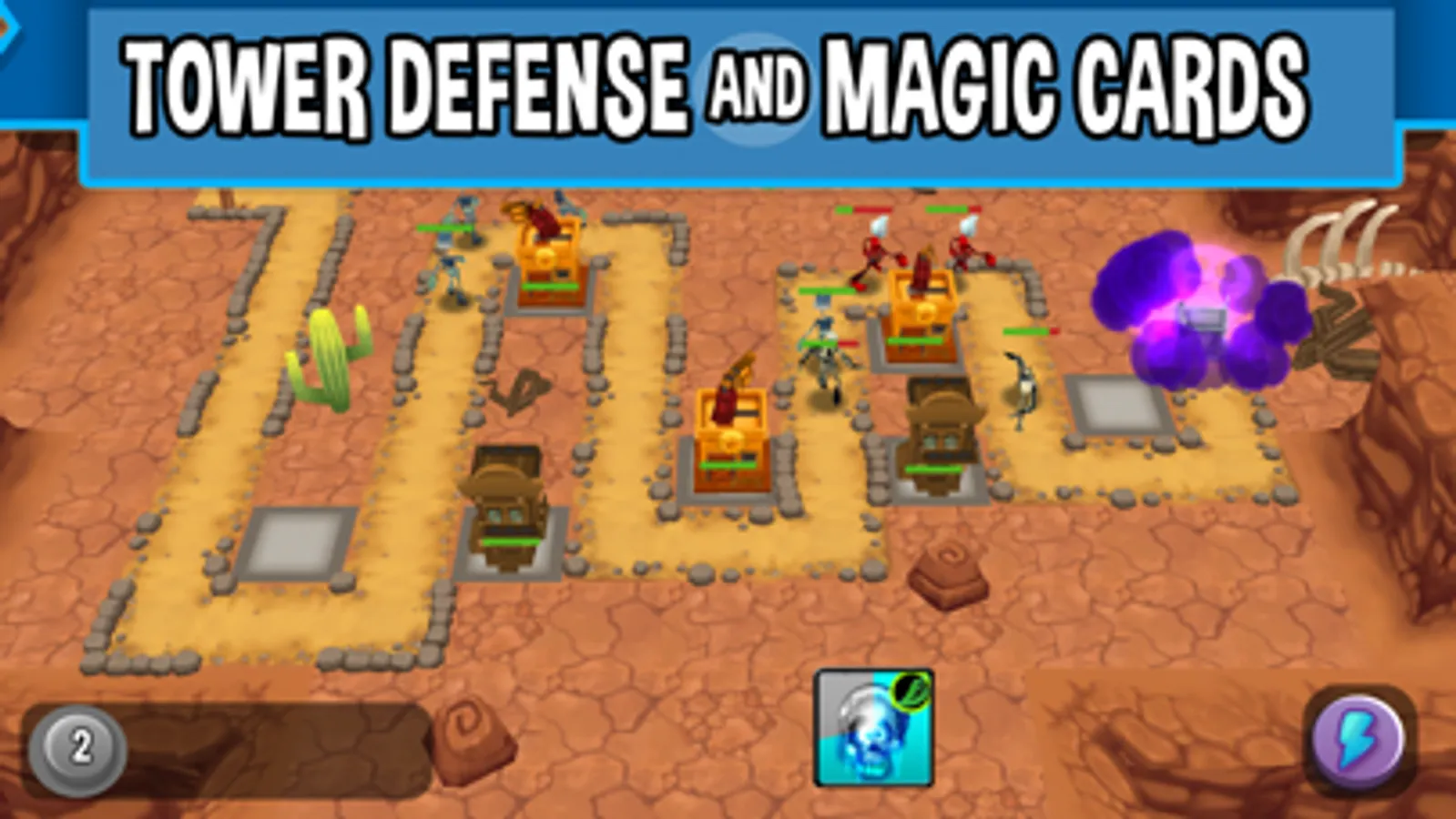 OVER 60 LEVELS Jump into showdowns in Boot Hill, Death Valley and the Mayan Ruins - switching up your magic card deck and tower defenses for every unique level!