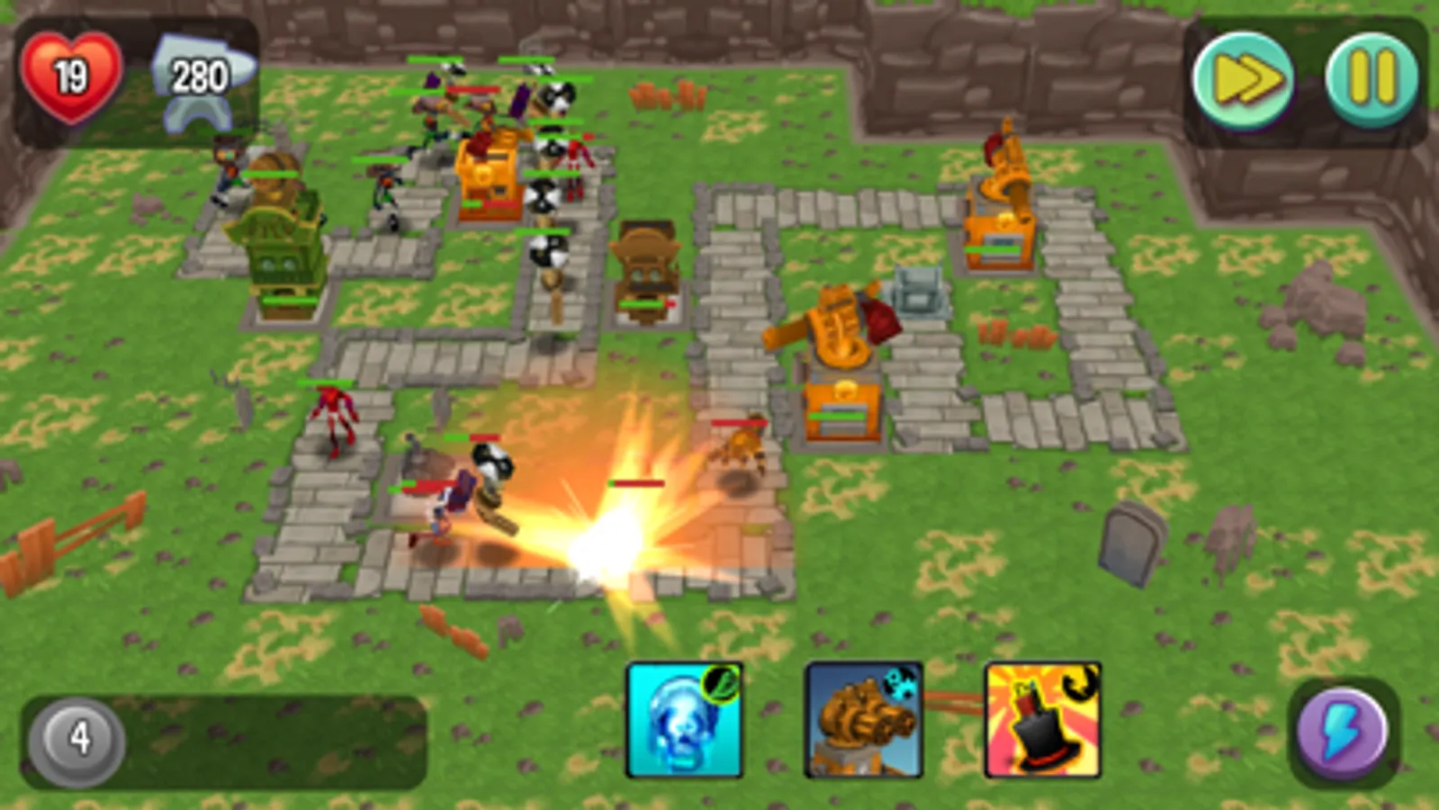 ● SIX UNIQUE TOWERS choose among a group of four default towers from the Sheriff six-gun to the Blacksmith mortar, to the special unlockable ones in the store!