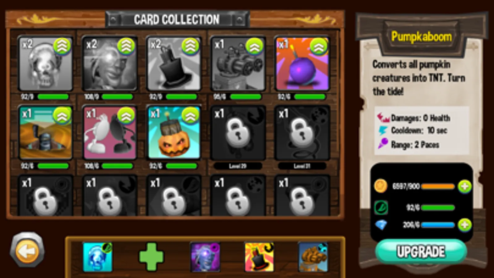 ● 25 MAGIC CARDS that intensify towers, transform monsters, summon portals and more!