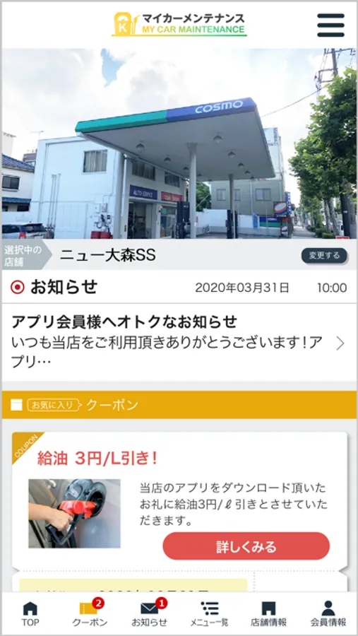 オイル交換などお車のメンテナンスもクーポンで更にお得にご利用頂けます。