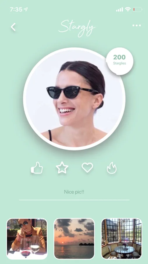 Connect with people nearby where ever you are... at a bar, at work, on the bus, even at home. Greet people you know, meet new friends, share photos and videos. Send Starglies to show them appreciation or just to say hi.