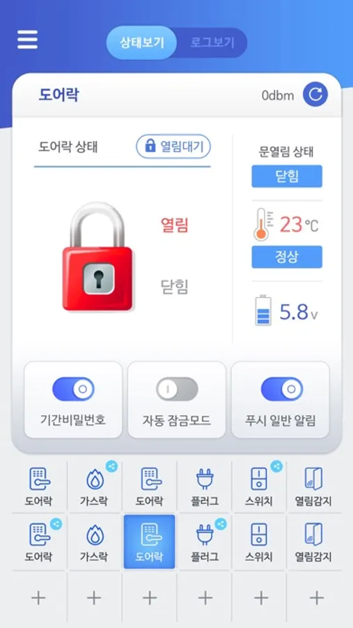 - 상태정보 확인(문상태/온도/건전지잔량)