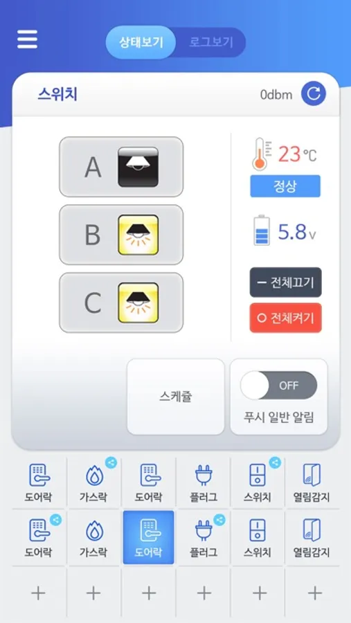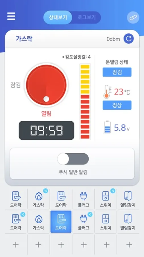 - 감지센서의 열림-닫힘 이력조회 가능