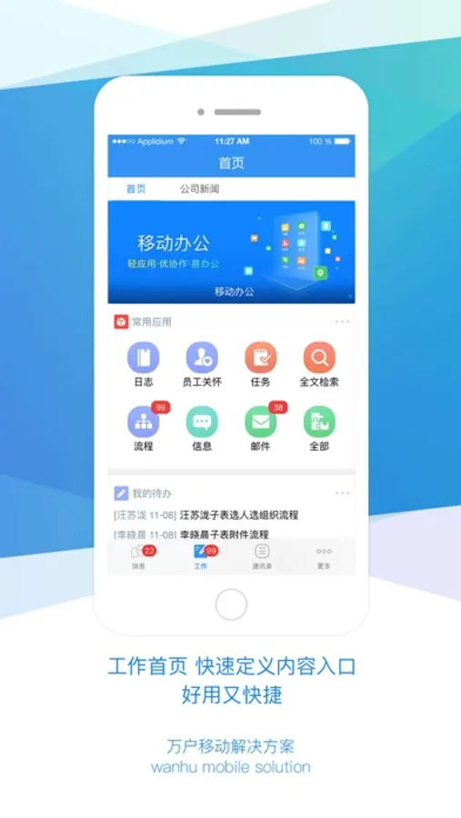 evo pro-移动办公管理平台是移动应用服务统一入口,统一移动业务门户入口,也提供第三方应用集成管控和统一的移动协同信息交流平台。