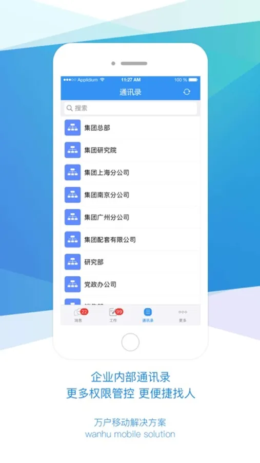 4、组织用户:自动同步组织用户并根据权限推送到每个员工,员工可公私通讯录共同管理;