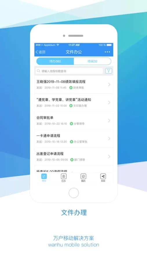 2、公文处理:公文的收发、办理审批、查看转办、在线编辑、手写意见的签批等;