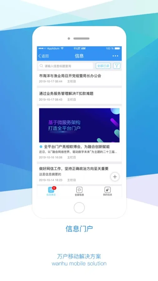 3、信息管理:查看与PC端一致的信息更新、推送、阅读情况,一处发布多终端查阅;