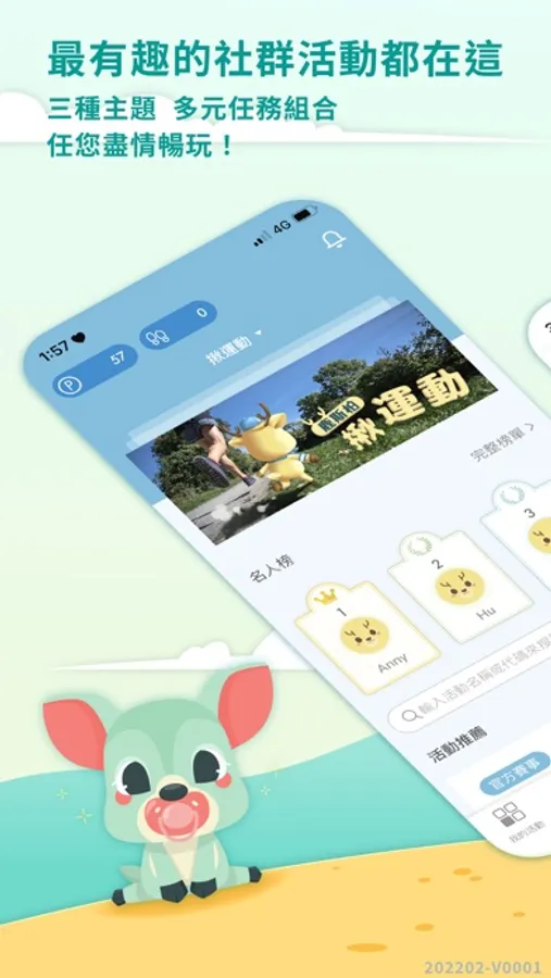 ● 特色化的趣味活動:獨具特色的活動任務,藉由運動、健康、旅遊的創意主題,創造各式各樣的活動體驗,並從中得到成就與獎勵回饋。