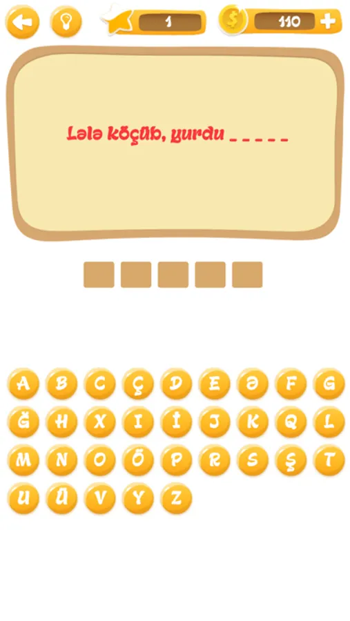 - Atalar sözündəki əksik sözü tapmaq üçün hərflərə toxunun.