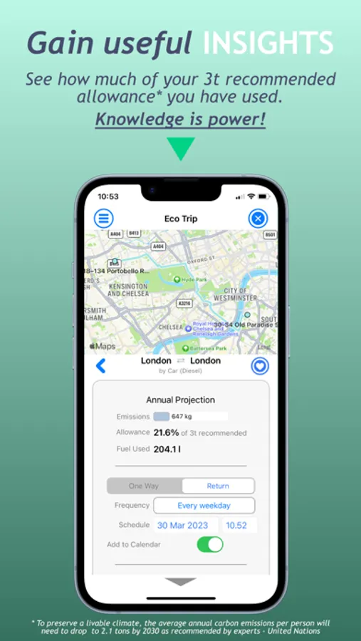 The first step in reducing our emissions is understanding what they are to start with. Armed with this knowledge, the next step is determining how to reduce them. Eco Trip gives you this power.