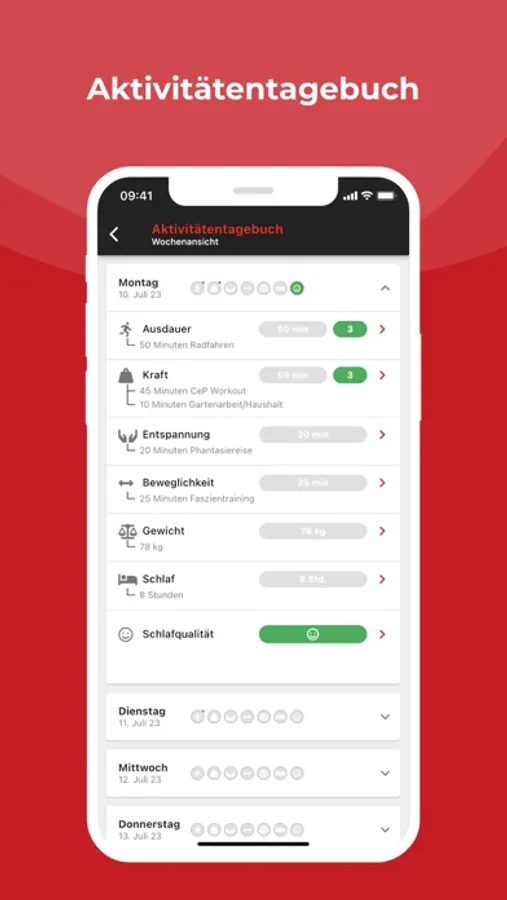 Nutze die erweiternde Features, wie z.B. Challenges oder Aktivitätentagebuch. Trete in den Bereichen Distanz, Schrittanzahl, Aktivitätsminuten, Treppensteigen, Stehstunden und Kalorien gegen die anderen Teams an. Hierfür nutzen wir die Daten des HealthKit von Apple.