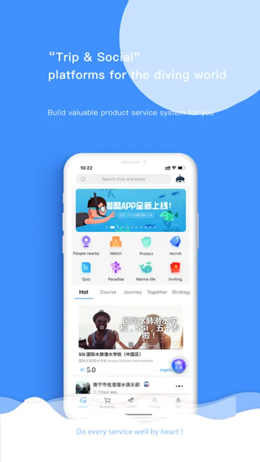Provide users with a free chat environment without national boundaries, and create a platform for self-expression of diving industry's exclusive circle of friends, forum sharing, photography competition, coach evaluation, event voting, etc.