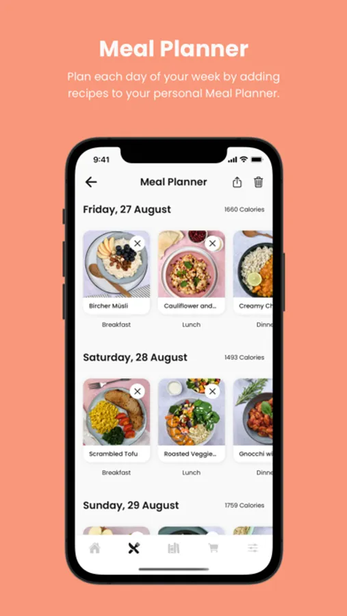 Plan each day of your week by adding recipes to your personal Meal Planner. You can then share it with friends and family through messages, email, etc.