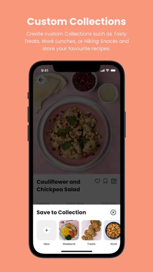 Create custom Collections such as Tasty Treats, Work Lunches, or Hiking Snacks and store your favourite recipes.
