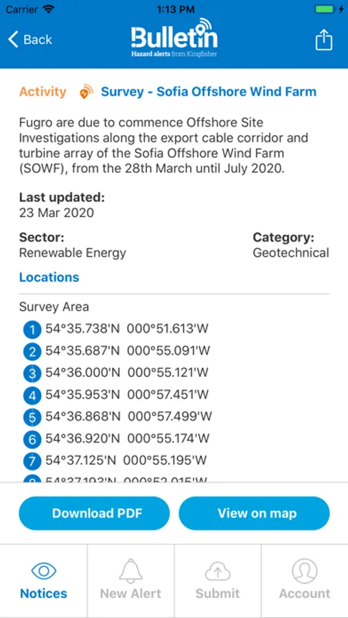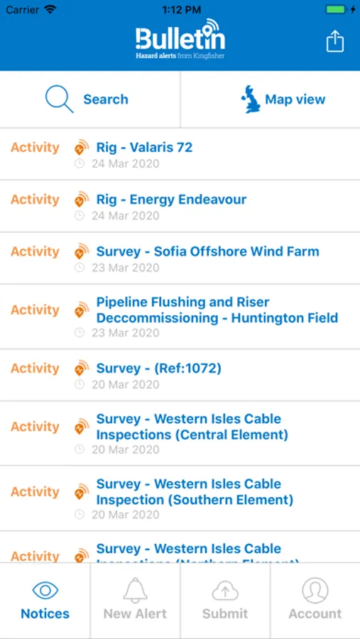 Kingfisher Bulletin keeps you updated directly through your phone or tablet, with the latest offshore hazards, activities and news from UK and surrounding waters. Set up personalised alerts, save hazard and notice information for offline use, and easily share content with others at the touch of a button.