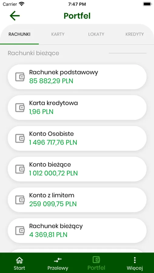- prezentowanie rachunków, kart, lokat i kredytów klienta,